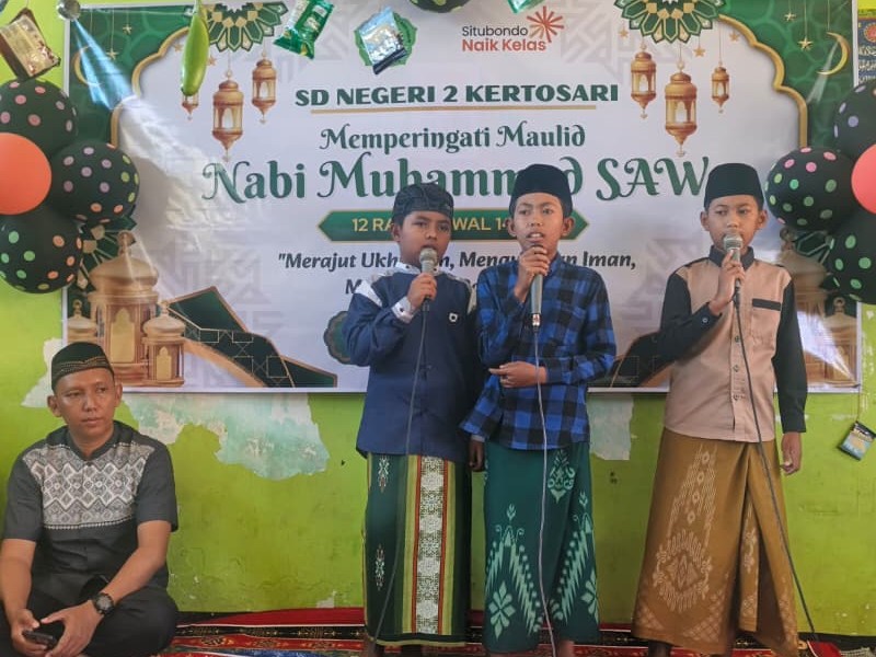 Situbondo 19 Sebtember 2025, SDN 2 KERTOSARI bersama Wali murid telah melaksanakan Maulid Nabi di SDN 2 KERTOSARI adalah perayaan hari lahir Nabi Muhammad SAW yang bertujuan mengenalkan akhlak mulia, menumbuhkan kecintaan pada Rasulullah, dan menanamkan nilai-nilai Islam kepada siswa sekolah dasar. Kegiatan ini melibatkan berbagai acara seperti ceramah kisah Nabi, lomba-lomba bertema Islam, pentas seni, pembacaan Al-Qur'an dan selawat, serta pawai mini di lingkungan sekolah.
